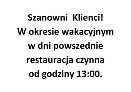 27.06.2021 - Zmiana godzin pracy restauracji w okresie wakacyjnym